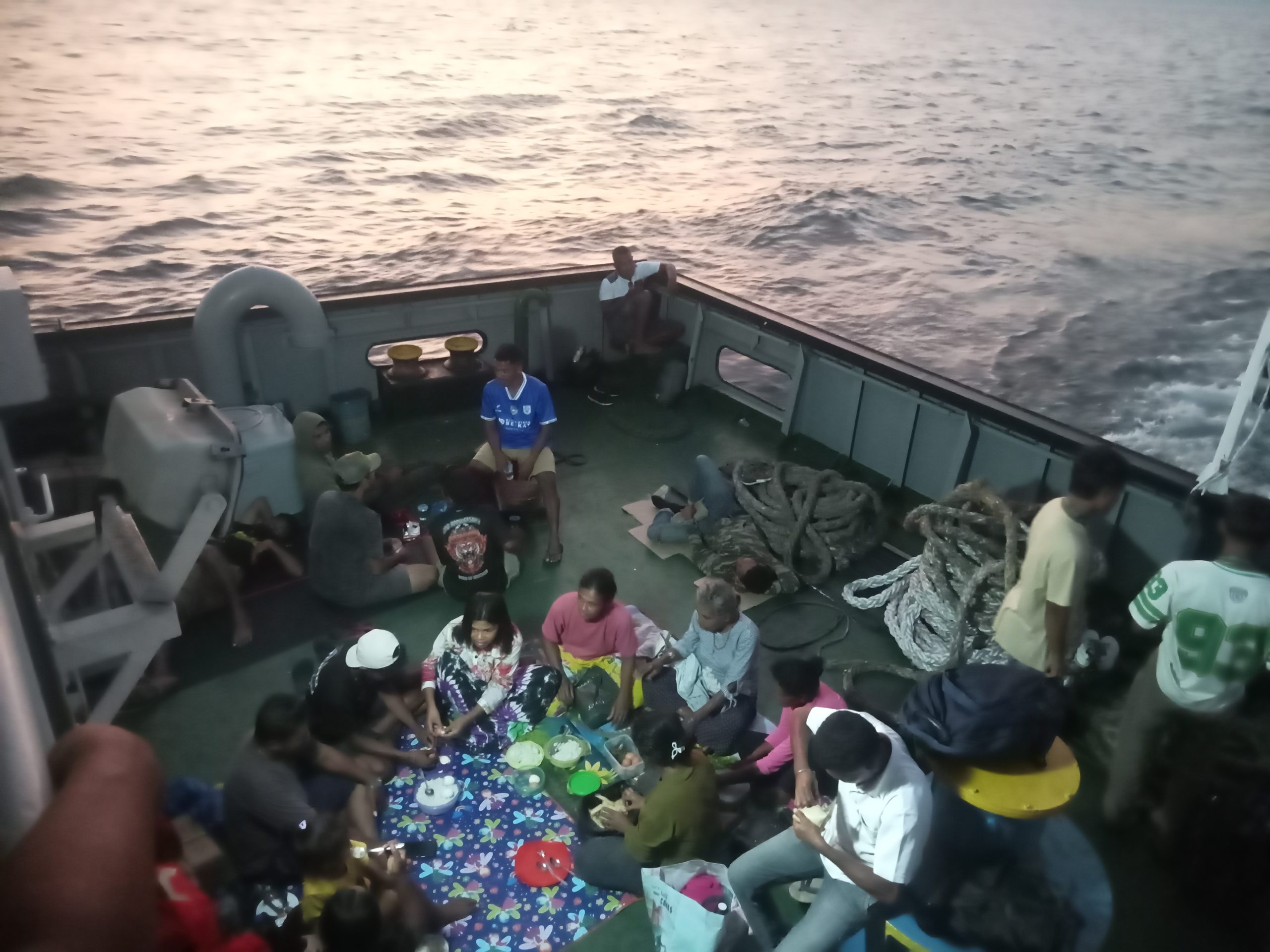 Hingga pukul 16.00 saat tali tambat kapal dilepas dari Dermaga Menanga, masih banyak penumpang yang tak kebagian tempat dan harus rela berdesakan. Rela tidur hanya bersandar pada dinding besi kapal, asal dermaga impian bisa dicapai. Malam menggelayut mengantar mimpi para penumpang menuju Pelabuhan Naikliu di Kabupaten TTS. (Tim LembataNews)