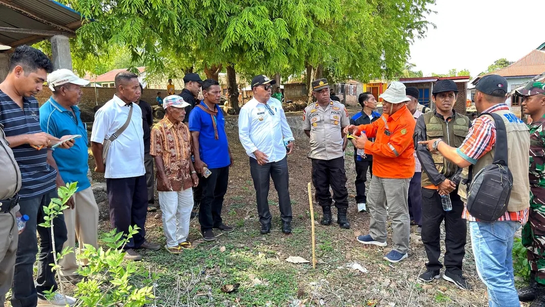 LEWOLEBA — BUPATI Lembata P Kanisius Tuaq bersama tim dari BNPB Pusat, didampingi BPBD dan Dinas Pekerjaan Umum Kabupaten Lembata, melakukan verifikasi lapangan terkait rencana pembangunan sumur bor bantuan BNPB di Desa Kaohua dan Desa Tubungwalang, Kecamatan Buyasuri.