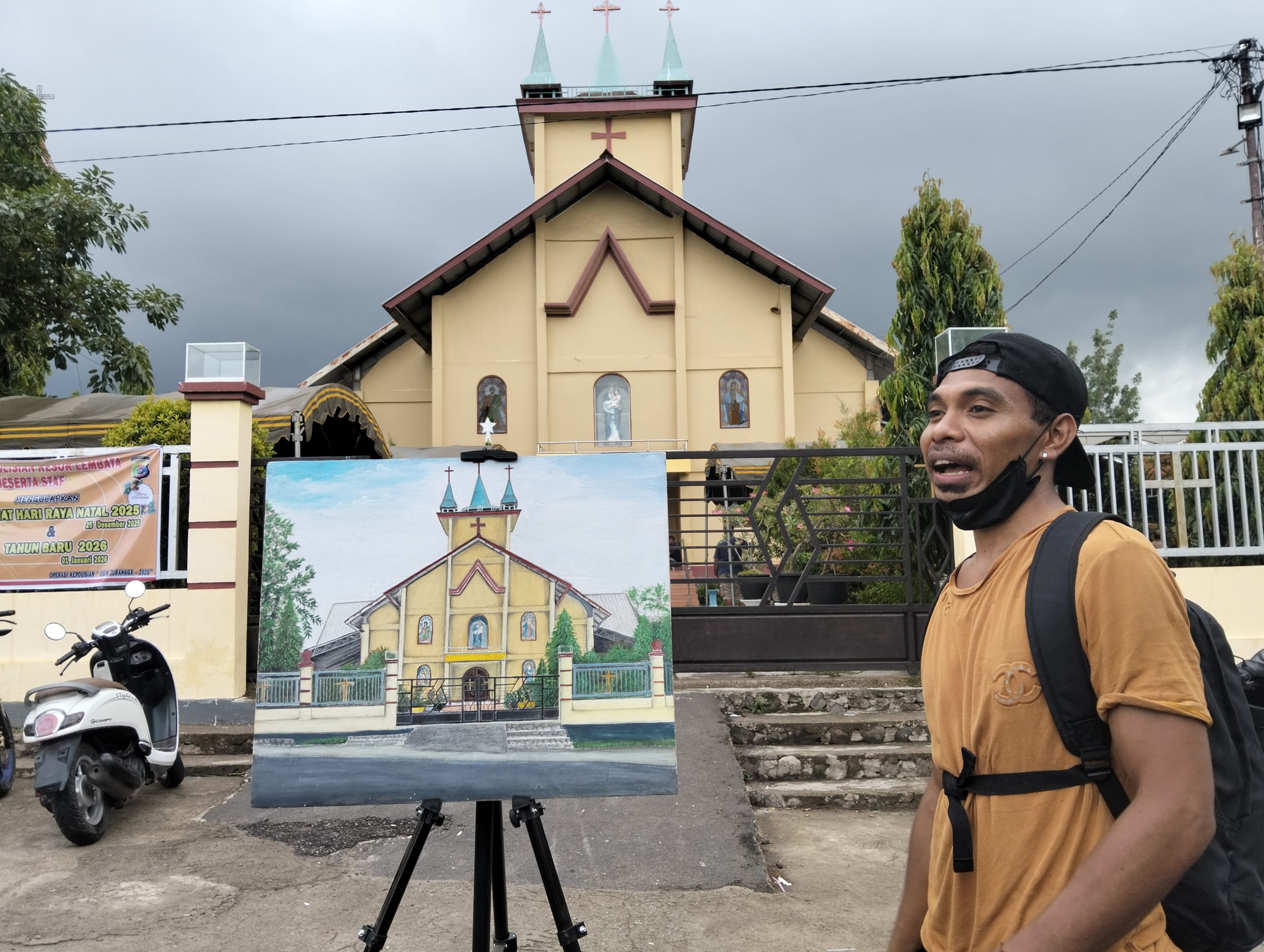 Setelah melukis sejumlah panorama alam di destinasi wisata, maka jelang akhir tahun 2025 ini, ia menetapkan arah kuasnya pada gereja.